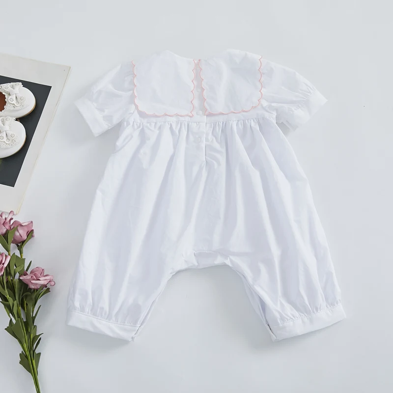 2026 Summer Newborn Baby Clothes Short Sleeve Flower Embroidered Toddler Smocking Romper 100% Cotton Casual Style